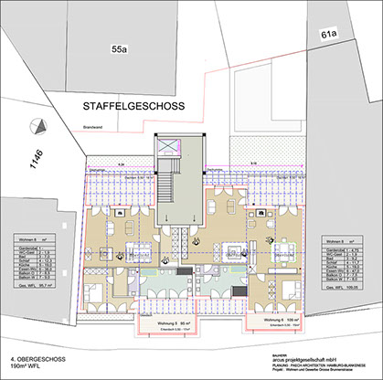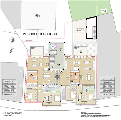 Neben großzügig geschnittenen Wohnungen von 73-119 qm und einem Penthouse ist das Erdgeschoss als Ladenfläche vorgesehen. Eine Tiefgarage bietet ausreichend Stellplätze.