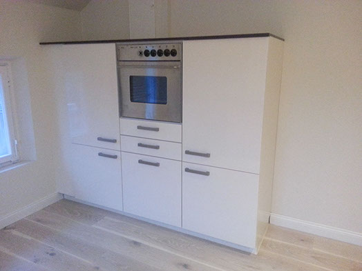 Das komplette OG + DG wurde neu definiert und mit neuen Böden, Wandfarben, Sanitärräumen und einer neuen Küche, Umbau einiger Fenster sowie den Ausbau DG zum Dachstudio.
