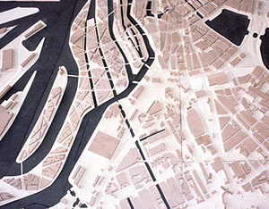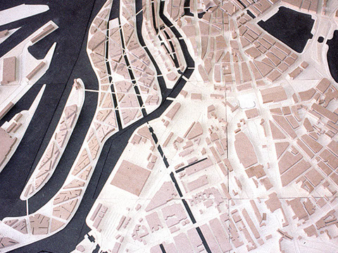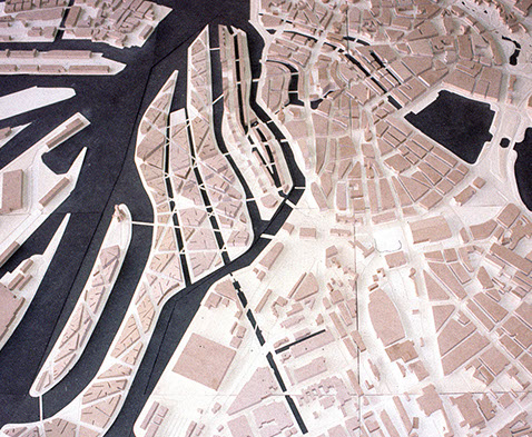 Es wird nach einer städtebaulichen Struktur gesucht, die aus der 160ha Industriefläche südlich der historischen Speicherstadt eine bauliche Form entwickelt, die einen neuen Stadtteil mit guter Beziehung zur Innenstadt Hamburgs für Wohnen, Büros, Kultur und architektonischen Highlights möglich machen kann.