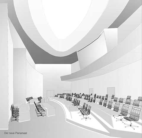 Neuplanung eines Sitzungssaales und aller Nebenfunktionen für das Mecklenburgische Parlament im Schloss Schwerin